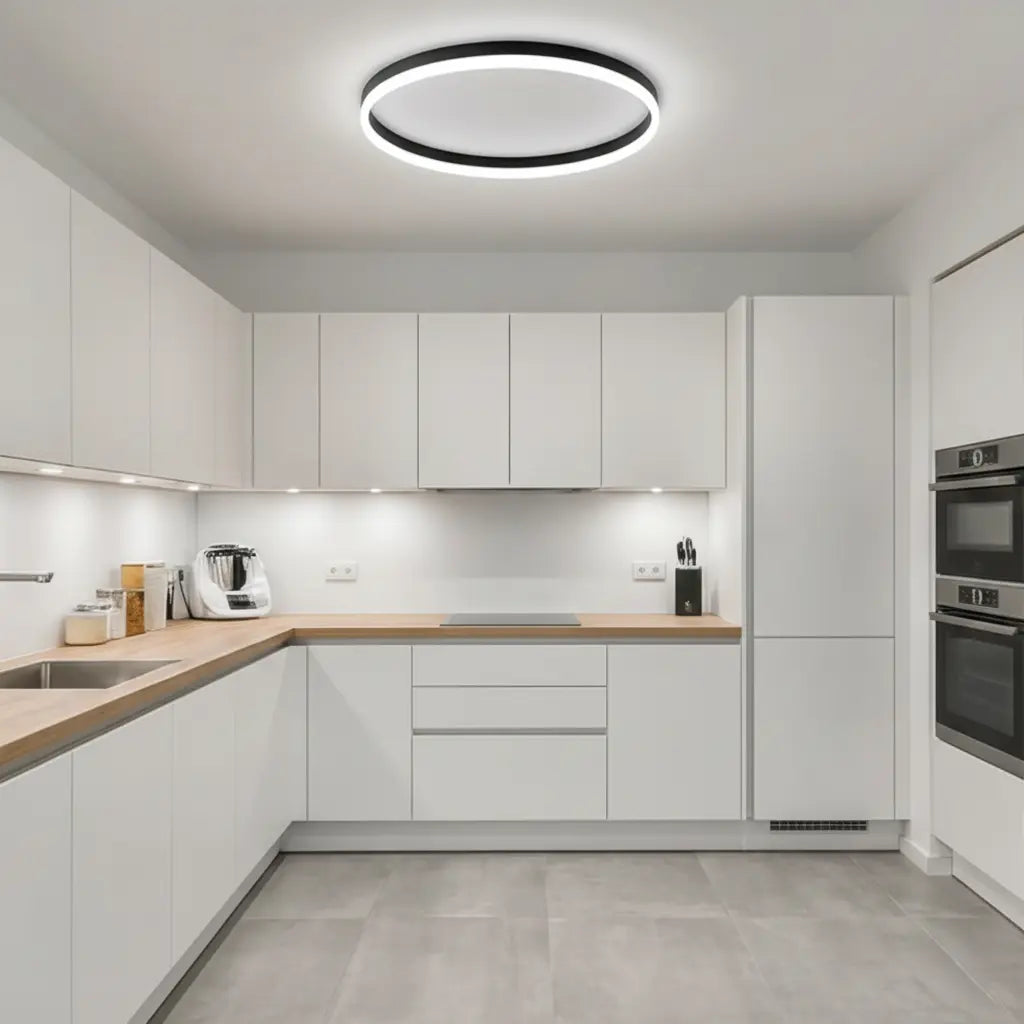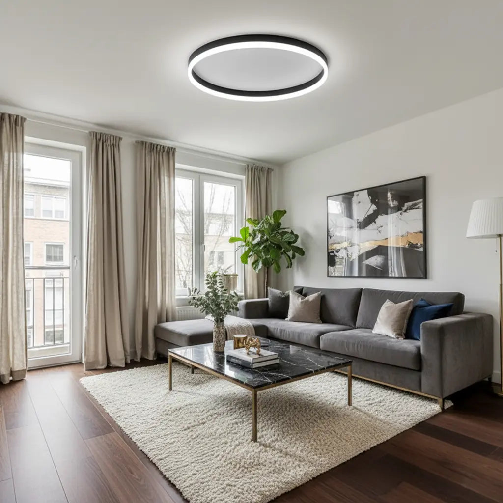 Deze design plafondlamp in zwart voegt een luxe en eigentijdse touch toe aan uw interieur. Het strakke, zwarte ontwerp is perfect voor moderne en industriële ruimtes, en biedt een sfeervolle en gelijkmatige verlichting. Ideaal voor in de woonkamer, keuken of slaapkamer, deze lamp dient als een stijlvol accent dat de ruimte verrijkt.
