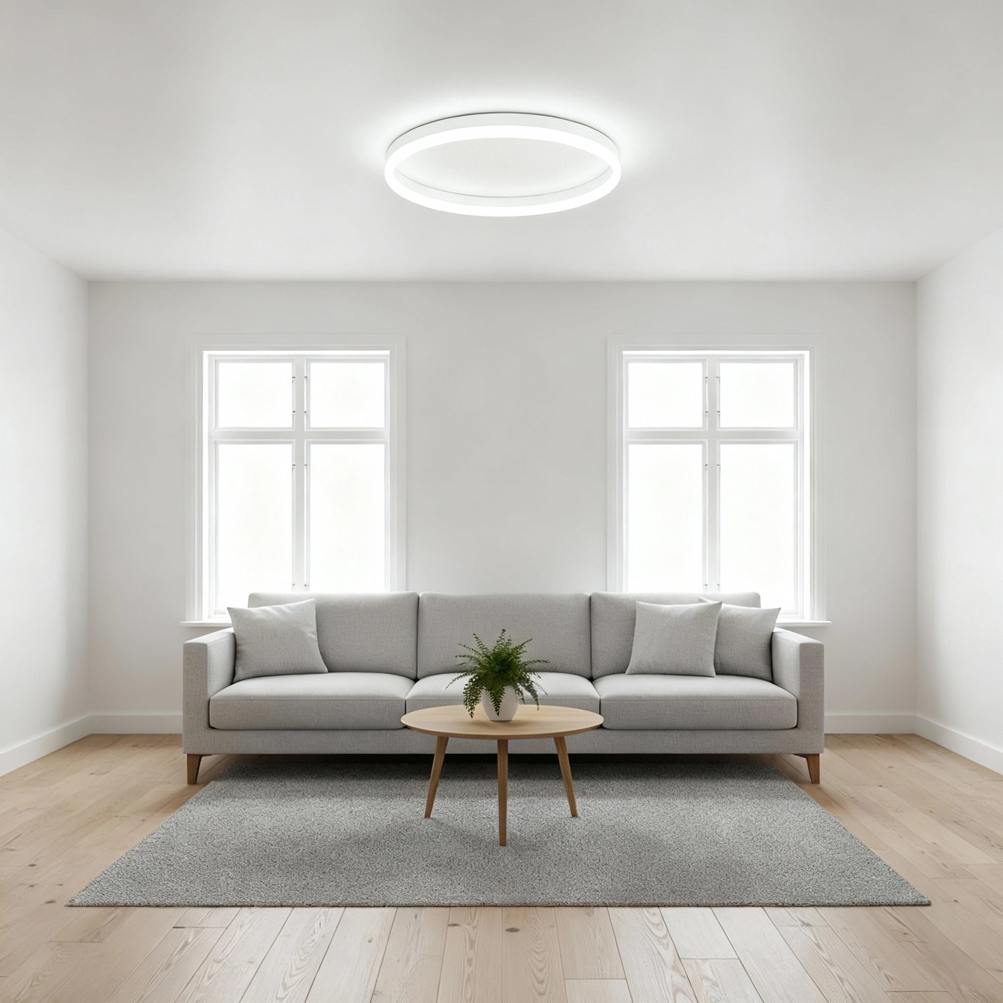Witte ringvormige plafondlamp voor een frisse en minimalistische uitstraling in elke kamer.