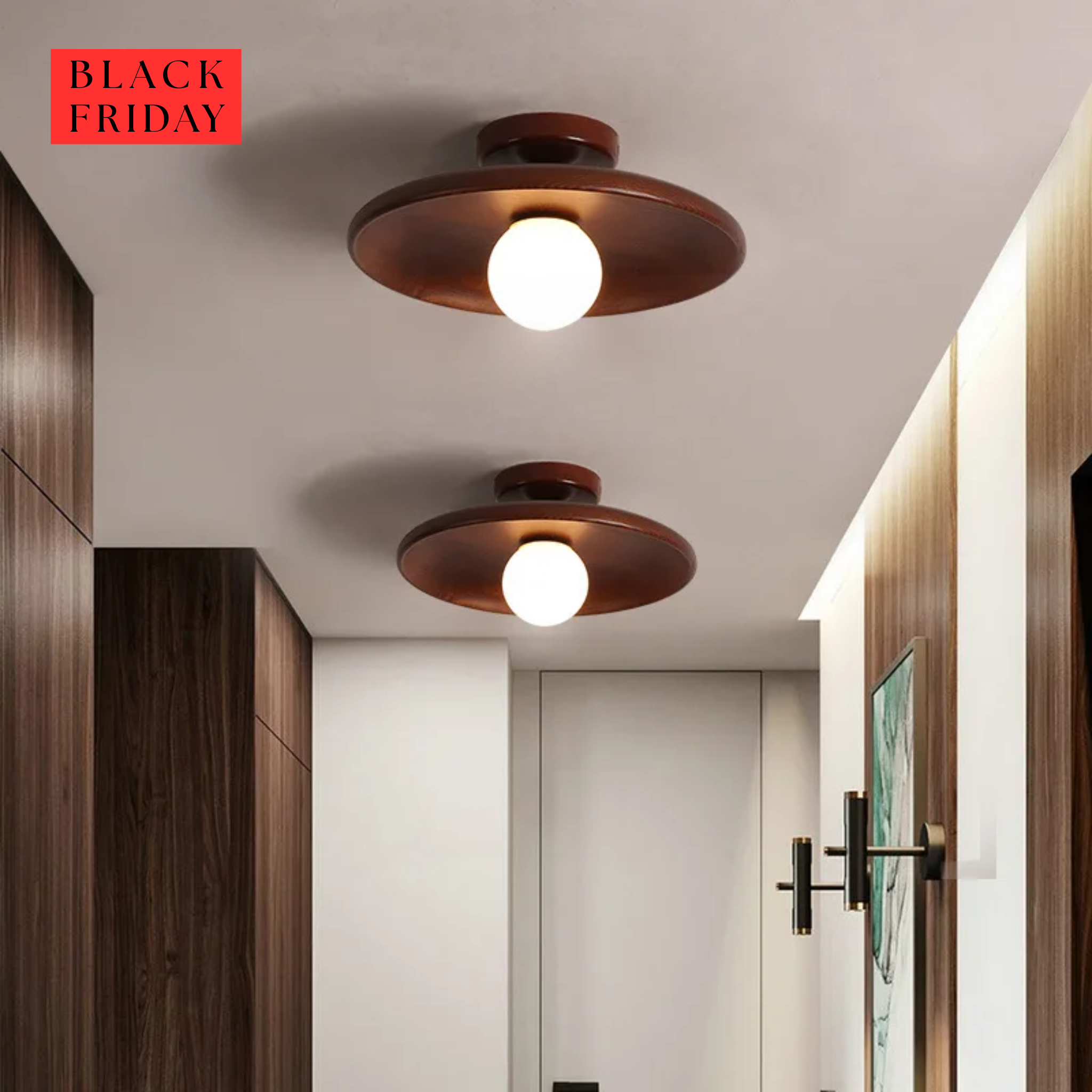 Plafondlamp van hout met bol – een perfecte mix van natuur en moderniteit.